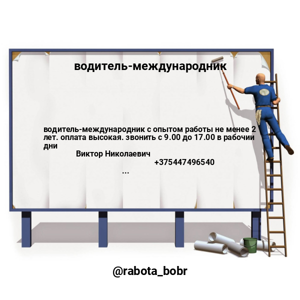 водитель-международник с опытом работы не менее 2 лет. оплата высокая. звонить с 9.00 до 17.00 в рабочии дни