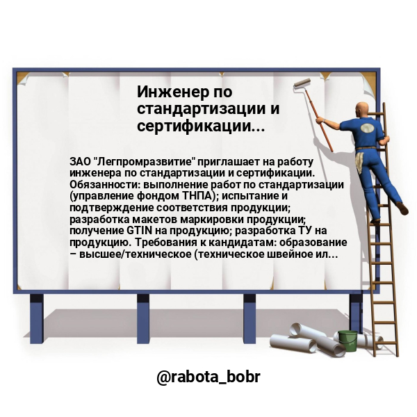 ЗАО "Легпромразвитие" приглашает на работу инженера по стандартизации и сертификации.