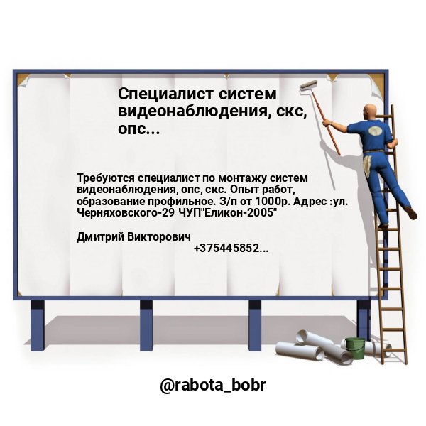 Требуются специалист по монтажу систем видеонаблюдения, опс, скс. Опыт работ, образование профильное. З/п от 1000р.