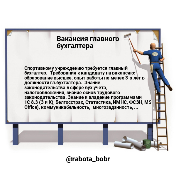 Требования к кандидату на вакансию: образование высшее, опыт работы не менее 3-х лет в должности гл.бухгалтера. Знание законодательства в сфере бух.учета, налогообложения, знание основ трудового законодательства. Знание и владение программами 1С 8.3 (З и К), Белгосстрах, Статистика, ИМНС, ФСЗН, MS Office), коммуникабельность, многозадачность, внимательность, умение принимать решения со всей ответственностью.